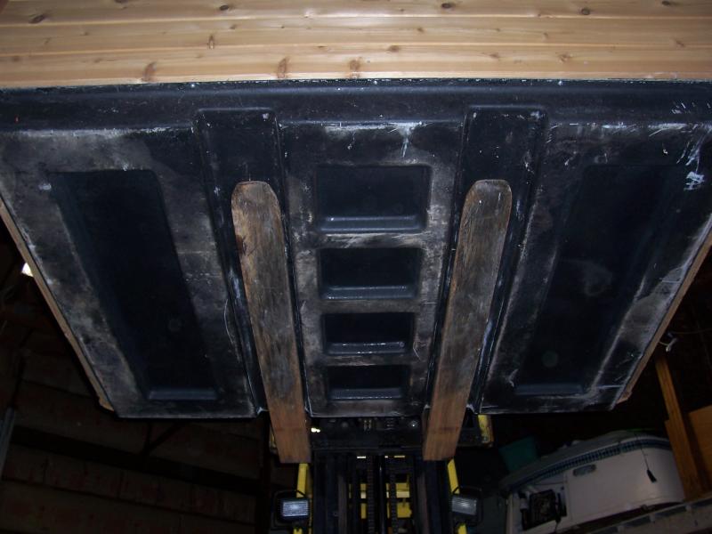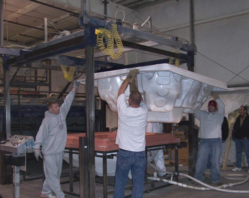 Each hot tub shell is sprayed with a fiberglass coating to add strength. See above picture.