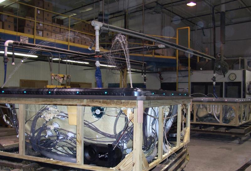 Each hot tub is water tested to make sure there are no leaks and be sure all equipment is functioning properly.