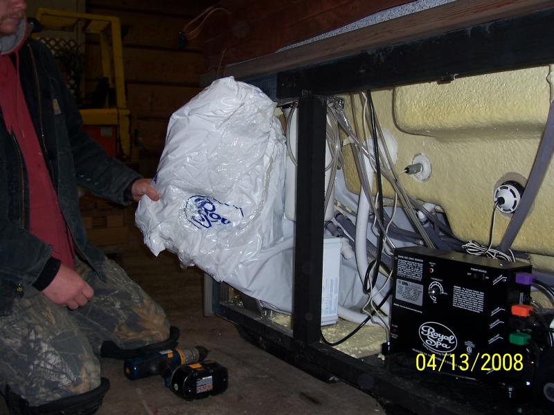 Do not let a salesman fool you into thinking they use foam for insulation. In most tubs, foam is cheap way to strenghten weak spa shells. Also, how can the repair guy find what's leaking when it's buried in foam. Foam filled and semi-foam filled tubs are very expensive to repair. Royals cabinet area is stuffed with easily removable R-25 fiberglass insulation. The shell is constructed of very thick fiberglass. It needs no help to support the weight of the water.